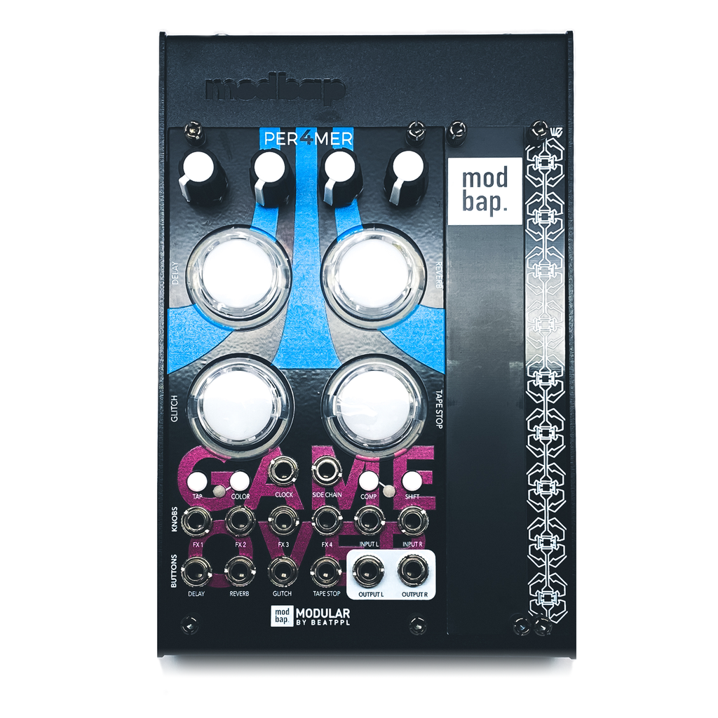 Extremely limited Modbap Modular Per4mer Game Over Anniversary Edition. This special drop celebrates both Modbap Modular’s and Per4mer’s 1 year anniversary. The Game Over edition of Per4mer, panel design by SynthDawg, is exclusive to Modbap.com. The best part is that a portion of the proceeds will be donated to Afrorack – a not-for-profit organization that teaches synthesis to underprivileged children of color in our founder’s hometown, Chicago.